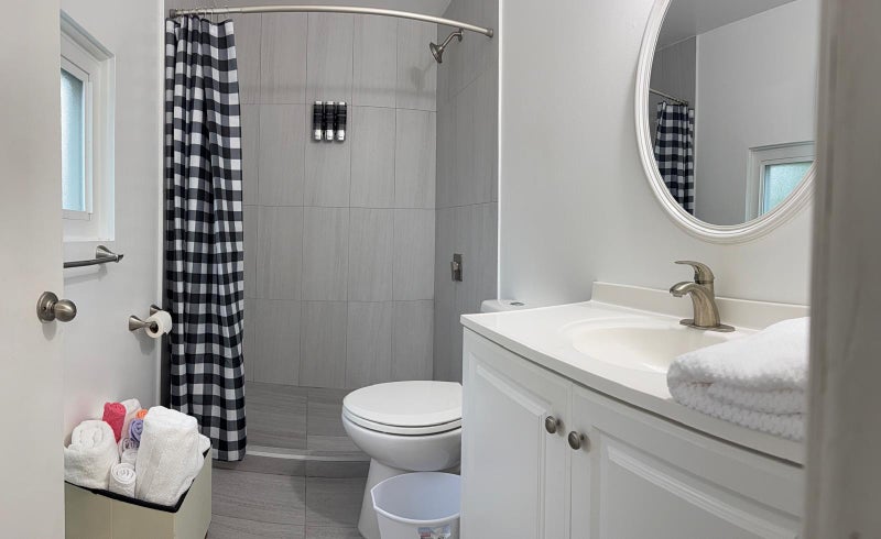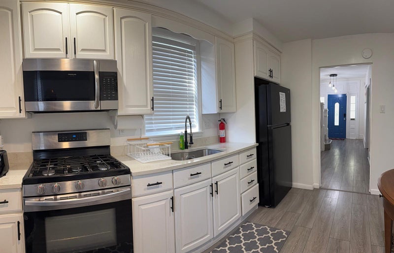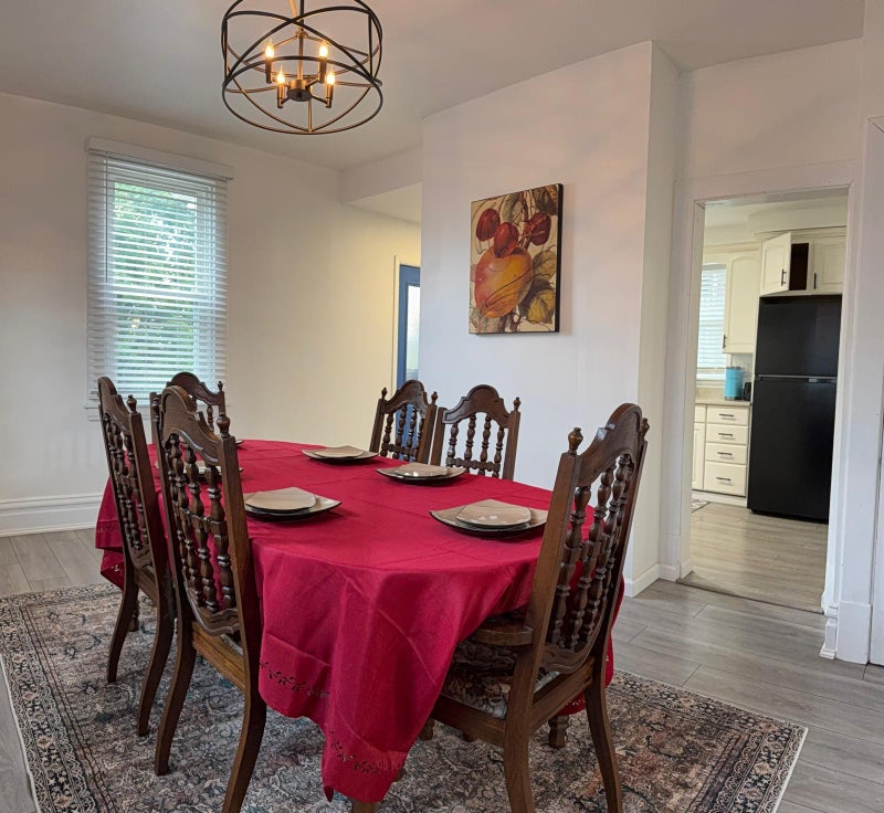 The kitchen comes equipped with a fridge, sink, oven, stovetop, as well as basic cookware, making it the perfect spot to whip up a meal or two.