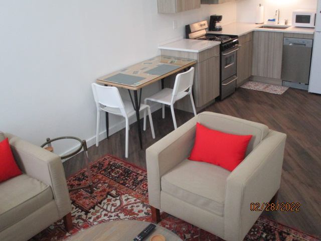 Apt features high efficiency heating & cooling, high efficiency water heater (so you won't run out of hot water), LED light fixtures, quartz countertops, Energy Star appliances. Architectdesigned modern interiors in an historic building.