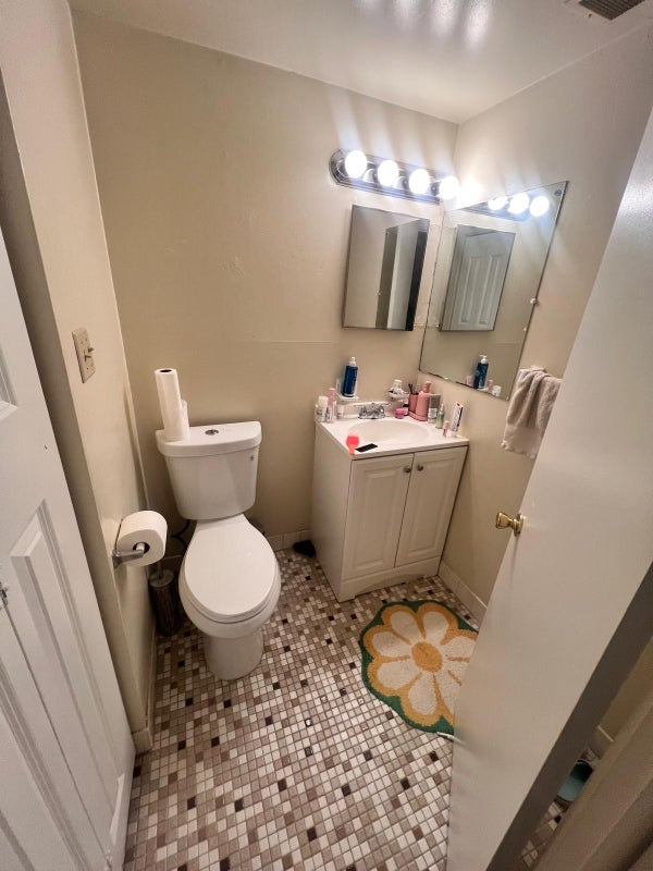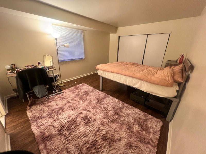 The Room Private bedroom with its own sink and vanity area (shared shower). Comes fully furnished with a queen bed, headboard, mattress, desk, desk chair, and dresser. Hardwood floors and a large closet.