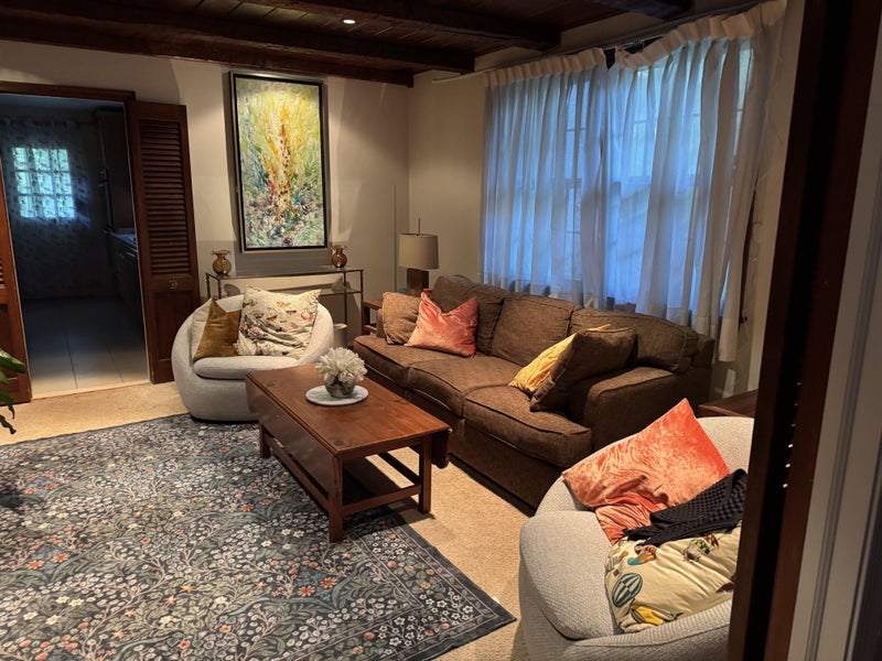 The home features hardwood floors and updated windows (2019), with shared access to a well-appointed kitchen, den, and library. Attic storage along with a dedicated pantry area in the kitchen. A large yard provides space for occasional small, private gatherings.