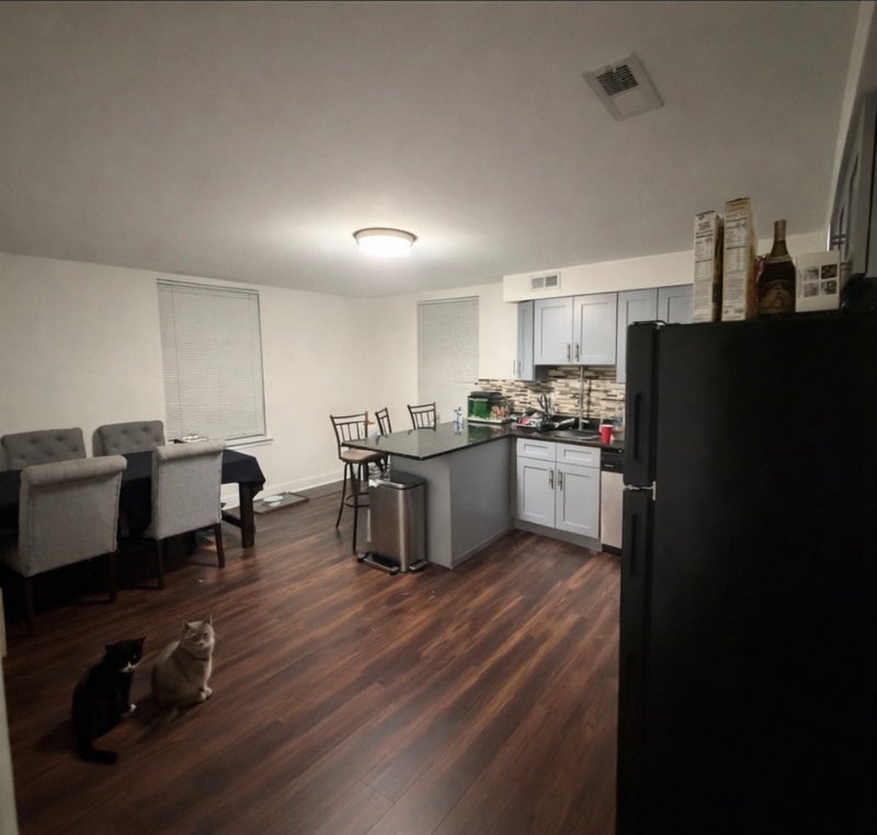 Mid-20s professional looking for a roommate for a spare furnished bedroom in a two bedroom apartment house. Can clear out everything in bedroom if needed. Have two cats and a dog that are all friendly. Looking for a responsible, no drama, easygoing roommate. Male or female is okay but ideally be around my age (early 20’s-late 30’s). Theres a washer/dryer in the building and it’s a very safe area. There is no living room. I have a tv and small couch in my bedroom where I relax. There’s just a kitchen/dining room area pictured, a chair and tv could be added .