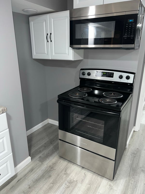 Furnished Bedroom Bathroom with Brand New Queen Bed, Dresser with Mirror, Chesser, Nightstand, New Dining Table, Coach, Inch TV, Washer, Dryer, Stove, Fridge, Microwave.