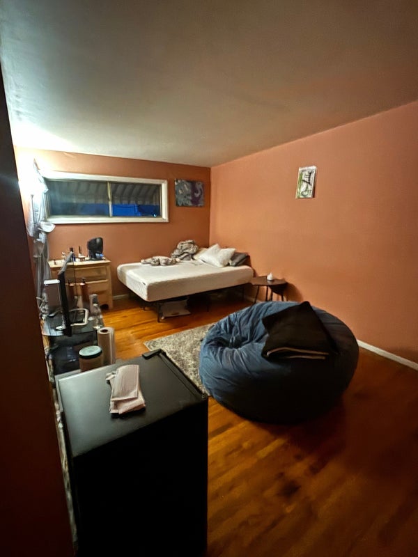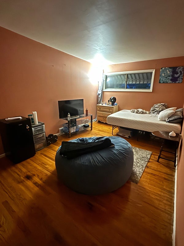 Large private room. Shared bathroom with one person. Shared common area and kitchen with 2 people. There is a cat in the house already . Utilities are split evenly every month. There is a spare bedroom next to this room used for storage if needed. Room has a full size bed in it and big dresser that will be there when moving in. If don’t want that stuff must remove yourself.