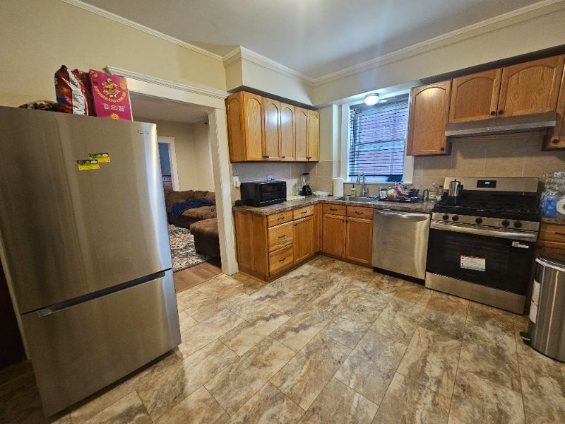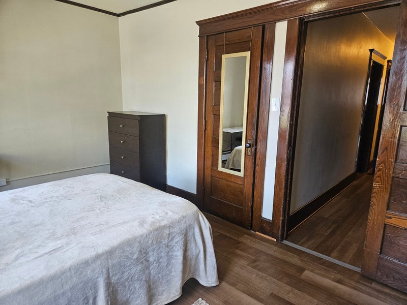 WHAT YOU GET: Private room. It has a queensize bed with two pillows and all necessary bedding, a small desk, a nightstand, blackout curtains, and a closet with hangers and a top shelf for storage. Shared space: bathroom, kitchen, and living room. The kitchen has a fullsized refrigeratorfreezer, microwave, dishwasher, gas stoveoven, and coffee maker. Washer and dryer in the basement. Highspeed internet.