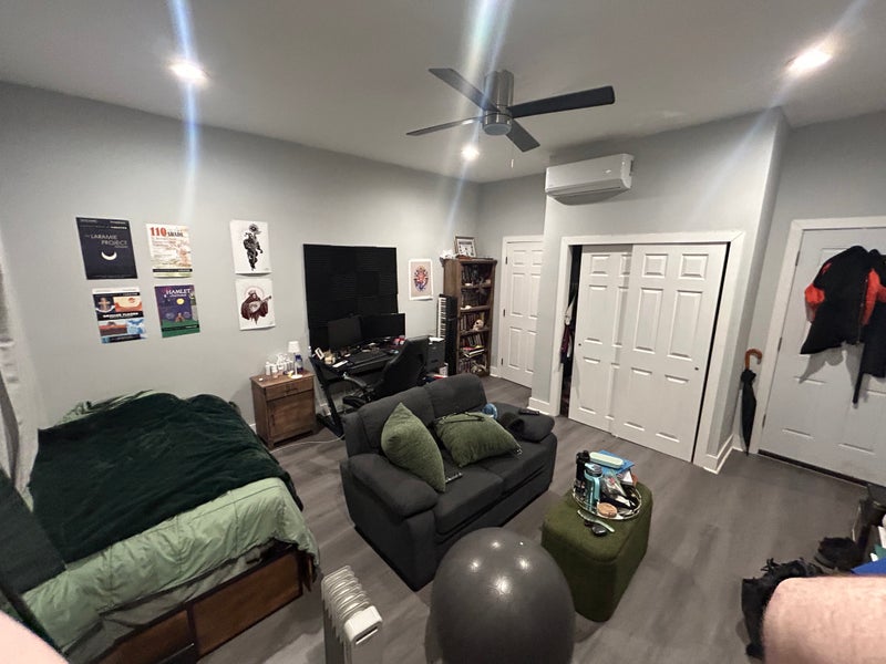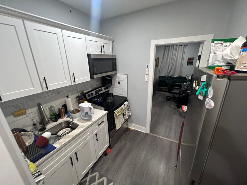 A comfortable apartment for 1 in a great neighborhood, and close to Dickinson Square Park. The main room is a large bedroom/living room, with high ceilings, tall windows, plenty of natural light, and a ceiling fan. A nice little kitchen with marble countertops, a stove, oven, microwave, coffee machine, toaster, and blender. A bathroom with a marble shower and multiple water settings. Most of the furniture in the images will remain, but I'll clear most of my personal affects out when I leave.