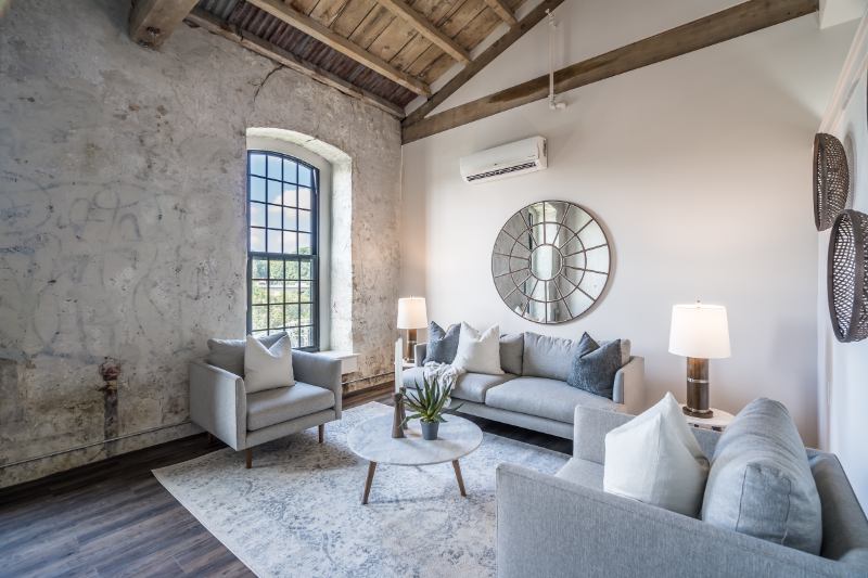 This sunny one bedroom loft apartment, located in a historic yarn mill, expertly blends oldworld charm with modern comforts. Enjoy soaring ceilings, stainless steel appliances and contemporary finishes. This unit has incredible views of the river and surrounding area.