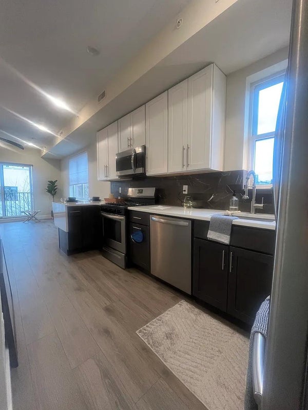 Apt details: 2bed 2bath 1500 sf 3rd floor apartment, 13mo lease starts May 1, 2026. Water is $75/mo. Gas & Electric through PECO & PGW. Verizon WiFi $55 (would split with me). (Security deposit paid and lease is signed by me already which can be revised to add another name. First month, last month & sec. dep. due 4/29) Two apartments total in building that share the Rooftop. Unit 1 is occupied and we are unit 2 on the third floor. Ground level is a dog groomers shop. Open bedroom is about 9ft x 14 ft, has 1 spacious closet and an en-suite bathroom that also has a door to the main hallway.