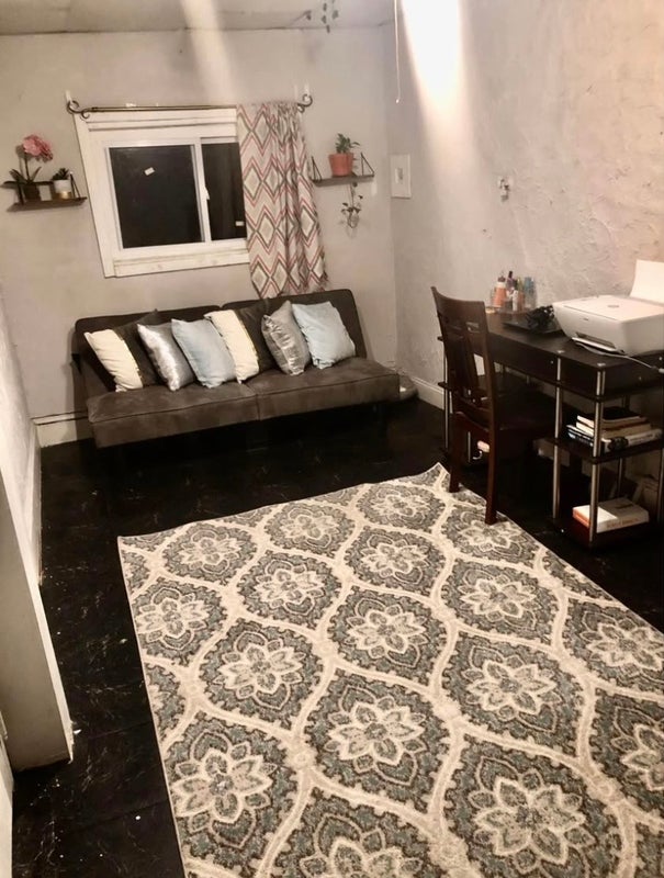 Pretty large backroom can fit bed , couch & desk with even lots more space. Largest bedroom in the house . Looking for a quiet , clean , respectful Roomate, no children and I will run a background check .