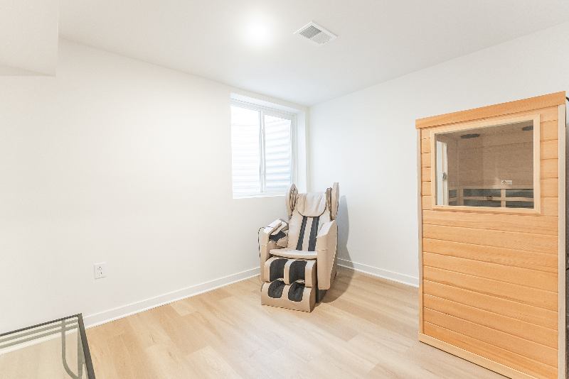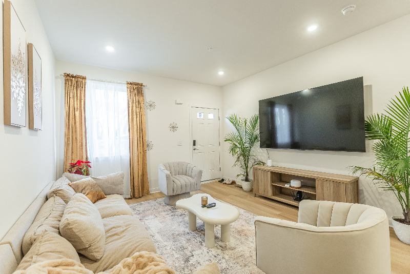 The Space Private Bedrooms Queensized beds with premium linens Smart TVs in each room Ample closet space Quiet, clean, and ideal for rest and focus Shared Amenities Include: Fully equipped home gym Massage chair for deep relaxation Peaceful backyard unwind with fresh air & privacy Rooftop deck enjoy city skyline views Smart TV in shared living area for movies & sports