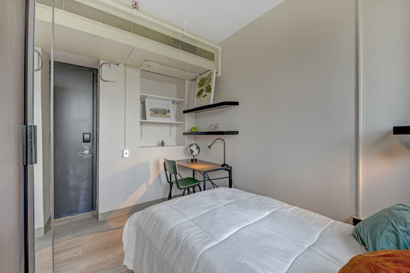This listing is for a space in a large dorm-style apartment with a shared kitchen, and you’ll only share your bathroom with one other person. Please note that only one person is allowed per bedroom.