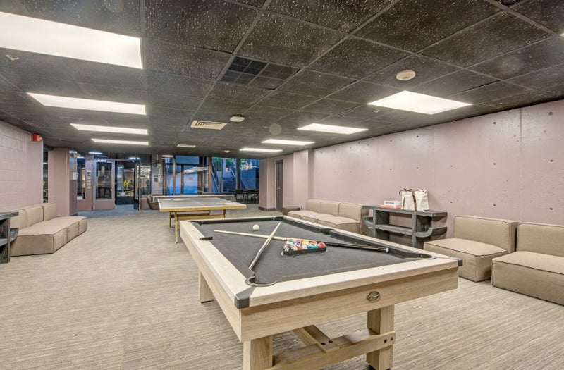 When it’s time to relax, you’ll find a 400-seat private movie theater opening in late November, an outdoor lounge and patio area, a recreational room with pool tables and ping pong, and plenty of room to just hang out and get to know your fellow residents. A hardwood indoor basketball court is also slated to open in November.