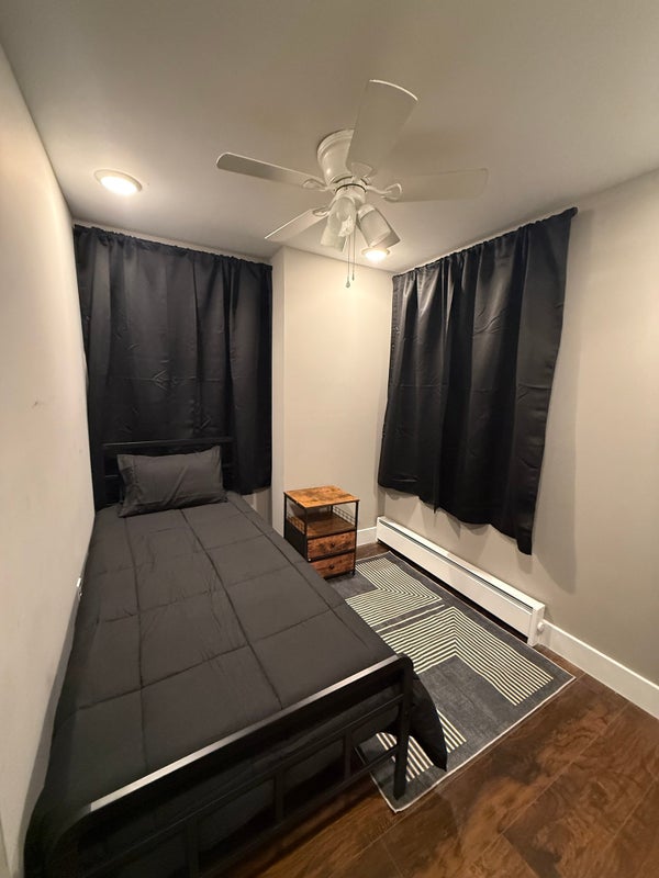 About the Space: The room is furnished and movein ready — Twin XL bed, full bedding, nightstand, blackout curtains, closet storage, ceiling fan, and overhead lighting. Perfect for one person; single occupancy only.