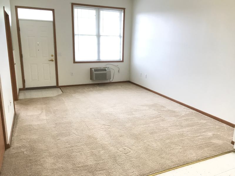 Spacious Bedroom porch suite with airconditioning, free Internet, laundry in the unit available and more! The picture that has the painted floor is actually carpeted now and that is the rear of the apartment. That space could be a large storage space or office.