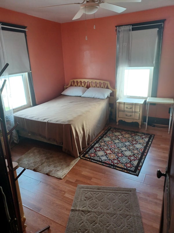 Large, furnished bedroom in large, well-kept home. Shared bathroom and access to kitchen/dining, laundry., parking, back yard with deck. Utilities included with Internet and cable. Quiet neighborhood. 1.5 bathrooms.