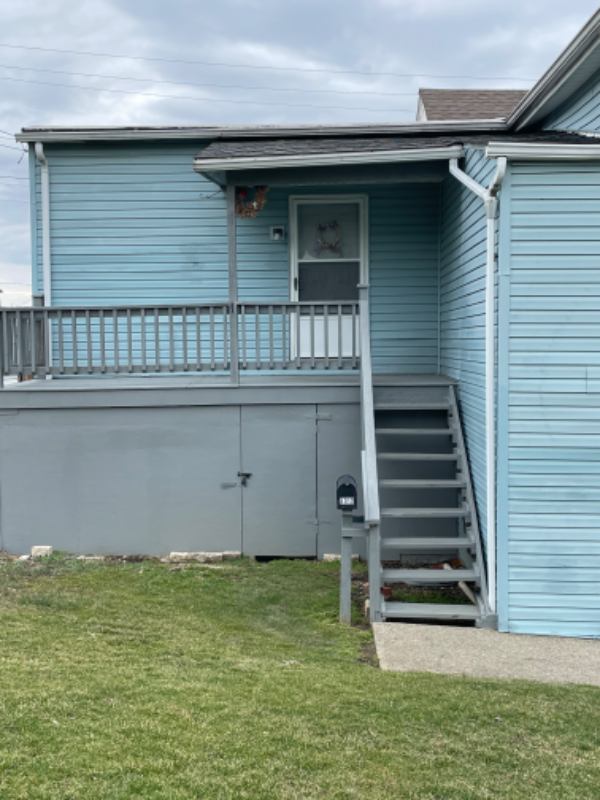 Cozy bedroom, living room, eatin kitchen, stove, refrigerator, bathroom with a shower, back porch, off street parking.