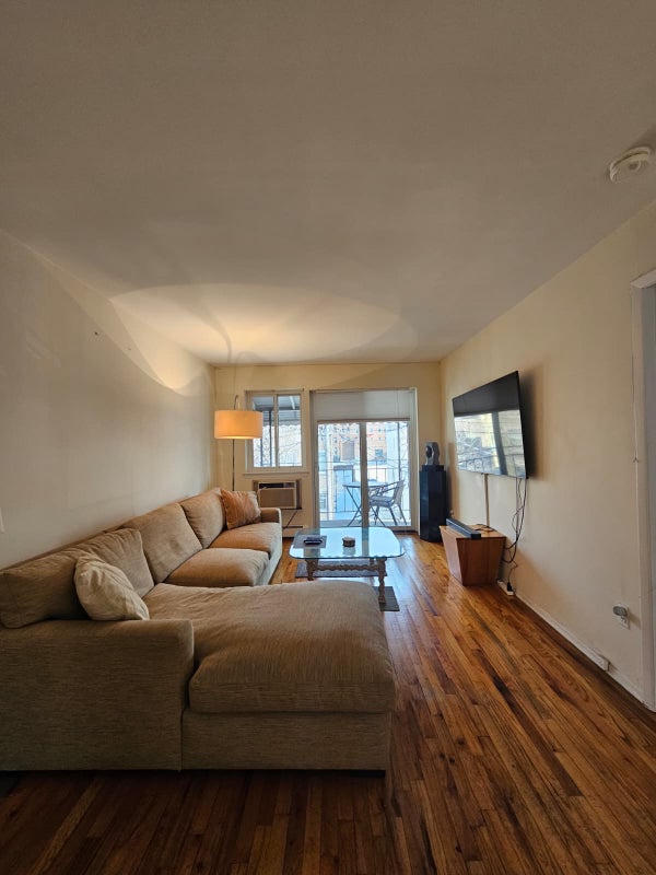 - Large shared living room and eat-in kitchen, bathroom, and balcony in a 3 bedroom apartment. - Looking for a quiet and neat person. - Quiet street close to restaurants and easy access to N/W and R/M train station and other transportations. - Existing roommate has his own bathroom.
