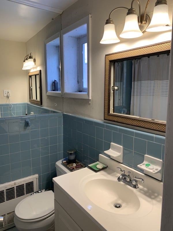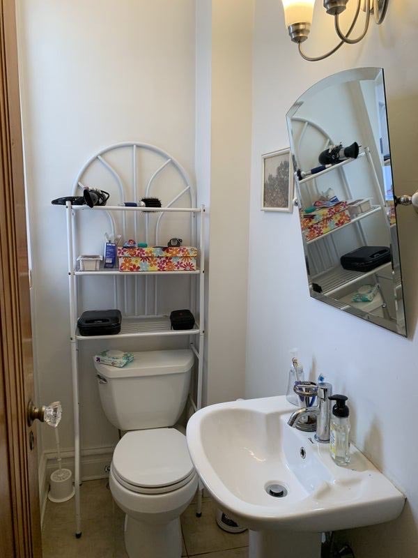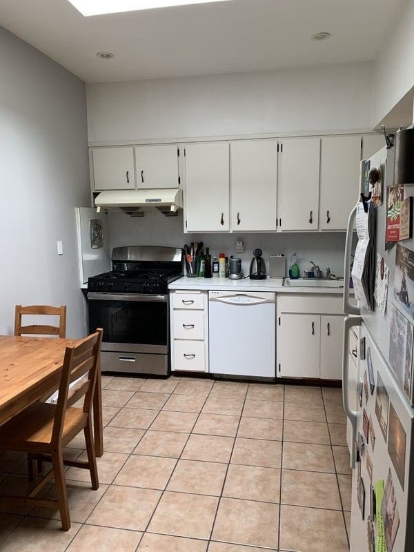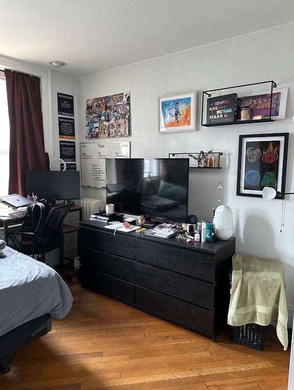 The shared living space consists of one full bathroom and one half bathroom, a massive living room, and an eat-in kitchen (with skylight!!). There's also ample closet space for luggage, jackets, or whatever else you might need to store.