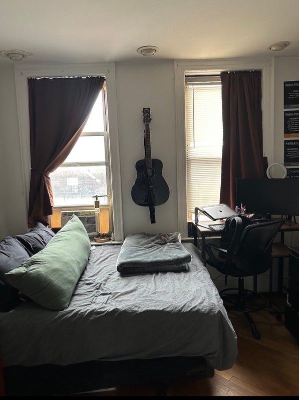 We have one bedroom available April 1st (possibly sooner) for a roommate in a spacious 4bd/1.5bath apartment steps away from the Steinway M/R stop. The room is large enough to fit a queen sized bed, dresser, desk, and has a large closet.