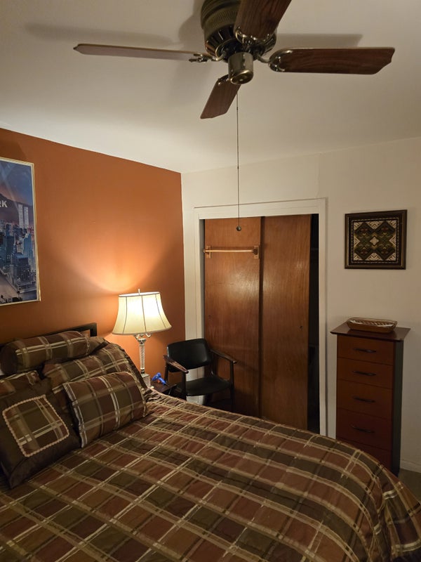 The room is very large, bright and sunny. And being on an isolated end of the apartment gives you privacy. Fully furnished room with a queen size bed, two dressers, desk, wireless internet and cable ready. Room also has a large double door closet, which provides lots of storage space.