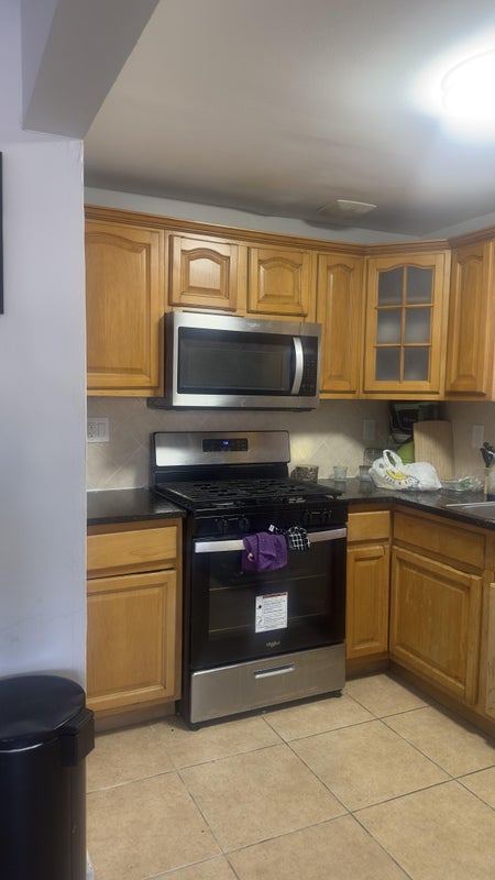 Renovated apartment. Shared eat in kitchen with tons of cabinets and stainless steel appliances. Located on the first floor.
