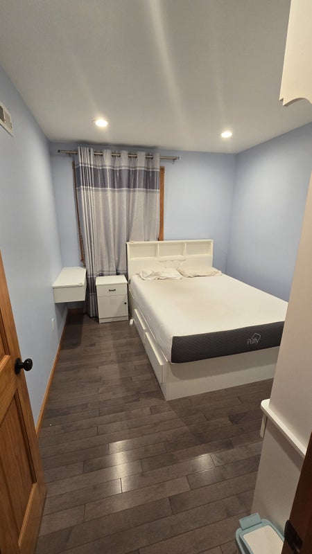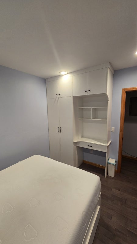 Room fits a twin bed and includes cabinets and a small table. Best for someone who doesn’t need a lot of space. Living room is yours for use as both of us dont. Shared kitchen and bathroom. Clean and well kept apartment.