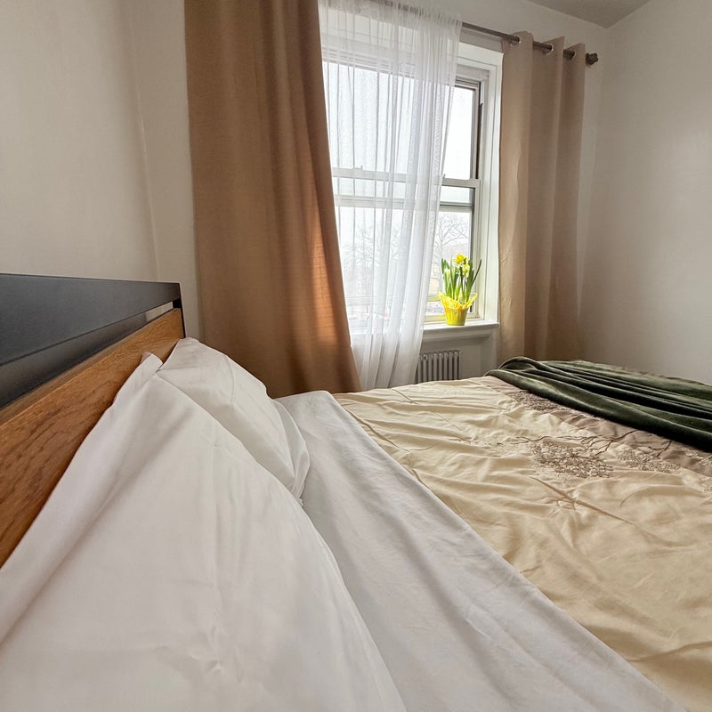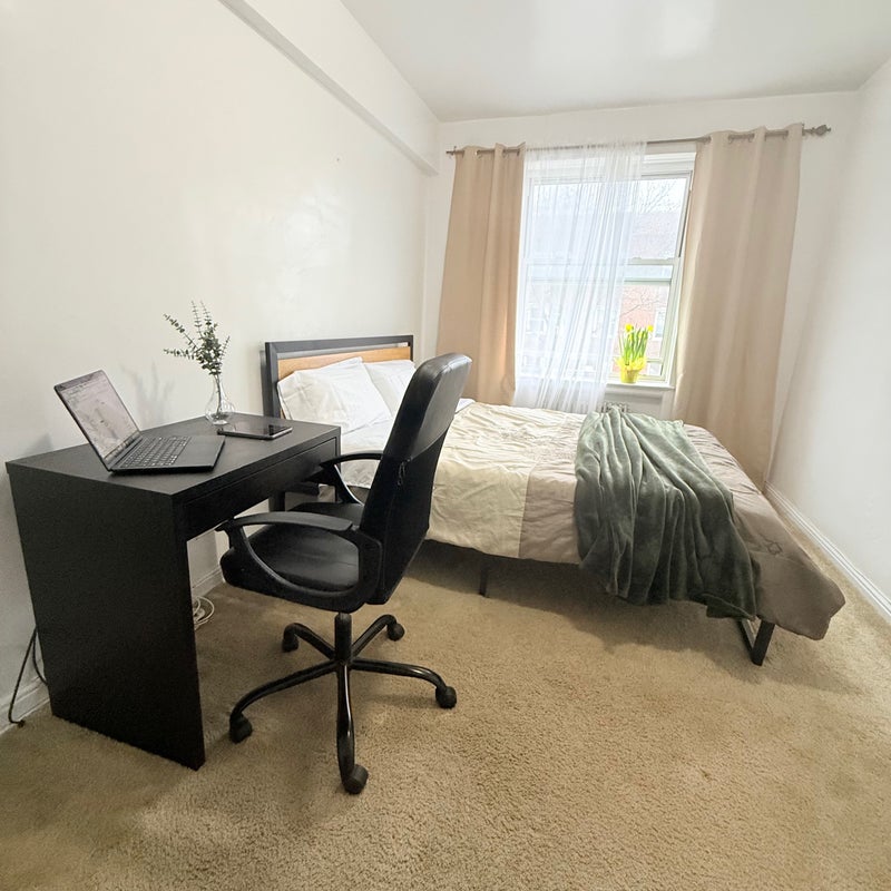 A bright and comfortable private room available in a quiet and convenient area of Queens.