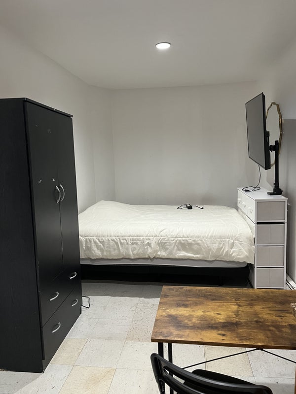 Patio Studio quiet good neighborhood Separate entrance in a private house Furnished room newly renovated, Public transportation Q30, Q31 Laundry, grocery & restaurant 1 block away Utensils included