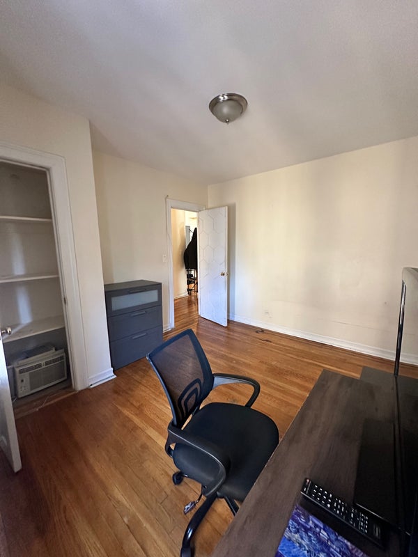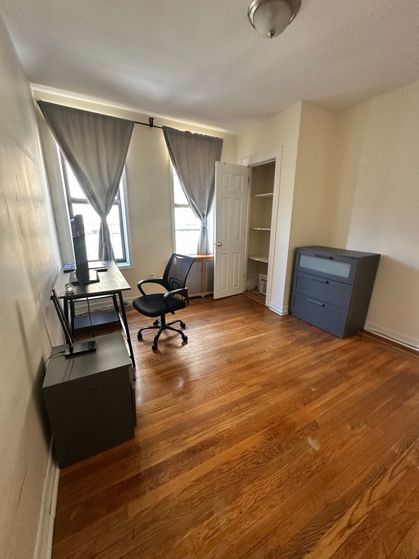 The room includes a private closet with shelving. In addition, the apartment has multiple hallway closets, and one additional shared-area closet will be reserved exclusively for your storage.