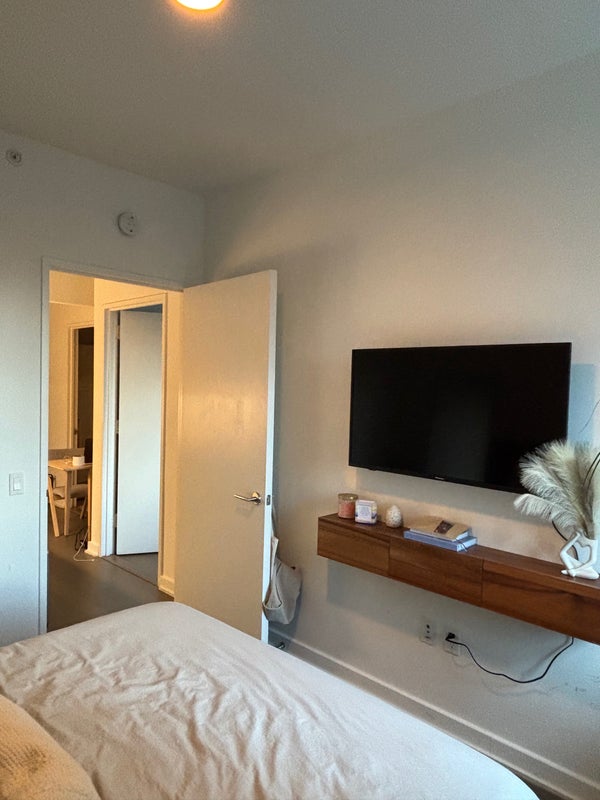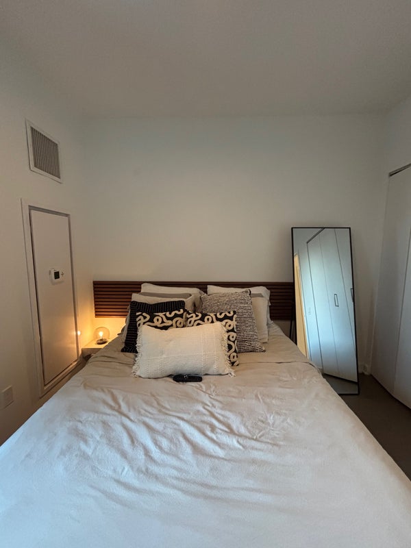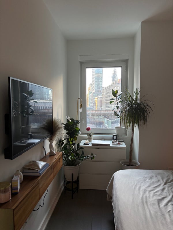 The room is part of a 2Beds, 1 Bath apartment with modern finishes, private central A/C unit, Manhattan and LIC views and ample closet space.