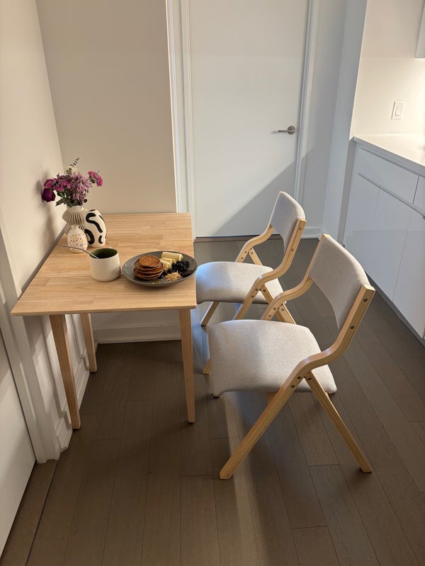 The apartment has a modern Italian kitchen with dishwasher and plenty of cabinets, a spacious bathroom and small dining area.