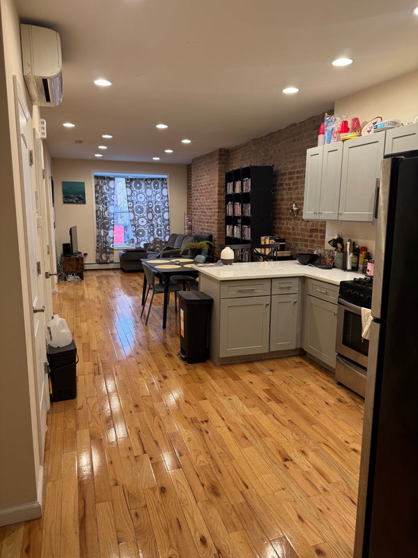 The apartment itself has a large living/dining area and an updated open kitchen with an island and plenty of storage space. Central A/C and heat throughout (climate control!). You would have your own closet in the living room in addition to the closet in your room. There is a deck area outside your room that we both have access to through our windows.