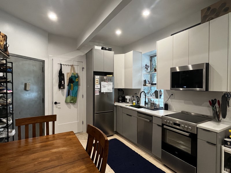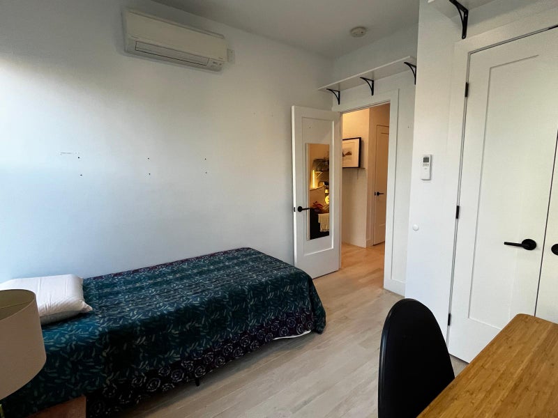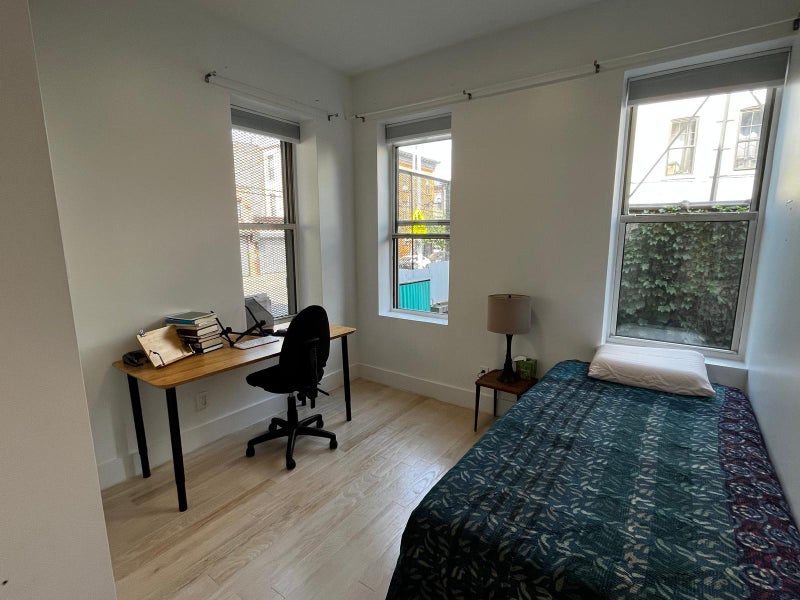 Apt has dishwasher, in-unit washer and dryer, and central heat/AC. Both available rooms overlook the private garden and each has a large closet. Medium size - can fit full bed, desk, bookcase with room for a yoga mat. Minimal furnishings available for one room, or both can be unfurnished.