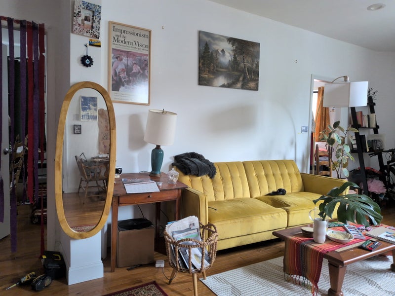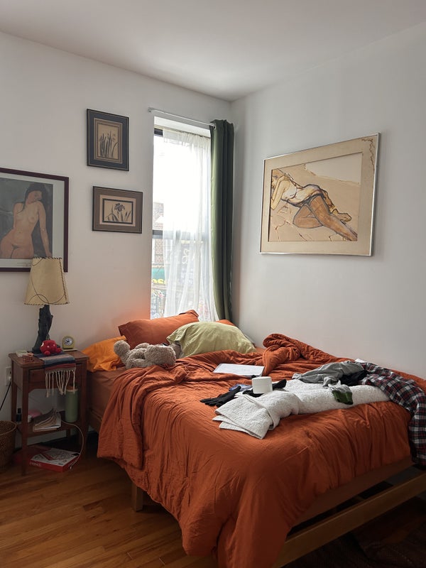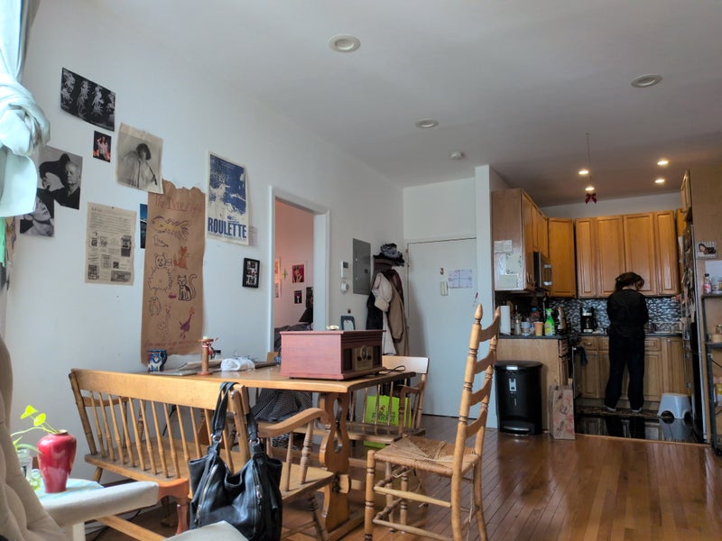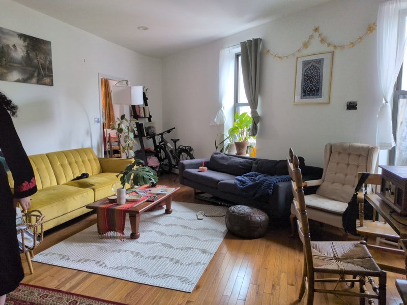 A spacious, fully furnished room in Ridgewood Queens under ten minutes walking from both the L and M train. In a lively part of Ridgewood with lots of neighboring businesses, cafes, and thrift stores. AC unit included with room. The apartment is also fully furnished and has two bathrooms. The residents are writers and performers who are always ready for an adventure. There is a really great living room for hosting which means that the apartment is social and is often the spot where friends gather.