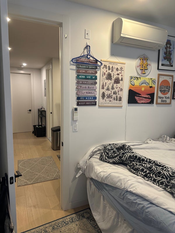 This apartment is a 2 bedroom 1 bathroom in Sunnyside, with <5 min walk to the 7 train (46th st station). The apartment has in-unit washer/dryer, dishwasher, wall-mounted mini splits with remotes for AC and heat, and a virtual doorman (Carson). The bedroom is a good size, easily fits a desk and queen sized bed with a window for nice sunlight. Kitchen and bathroom are shared. My current roommate is moving out to live with his girlfriend, so I’m looking for a new roommate.
