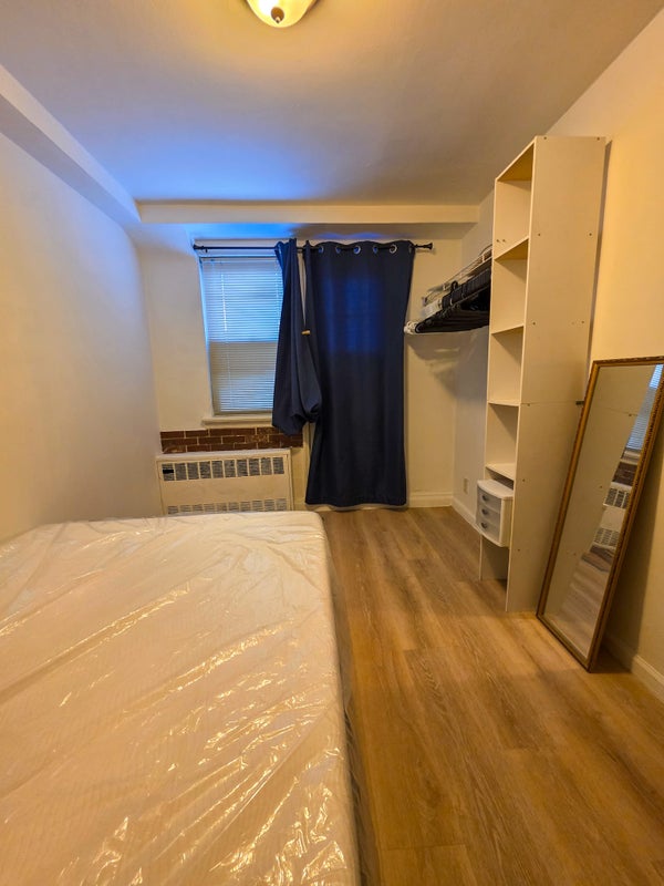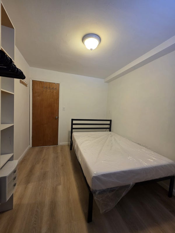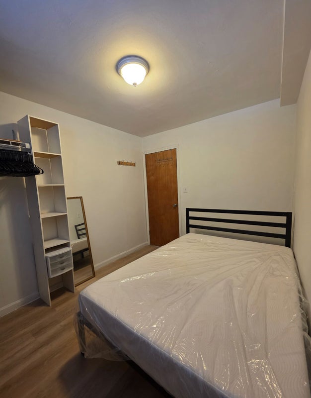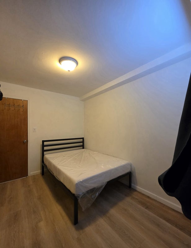 We're looking for a third roommate to occupy this comfortable room in our 3 bed, 1 bath apartment. The room is approximately 8 ft 4 inches by 11 ft 2 inches. The full-sized bed with mattress is available to be left here or removed.