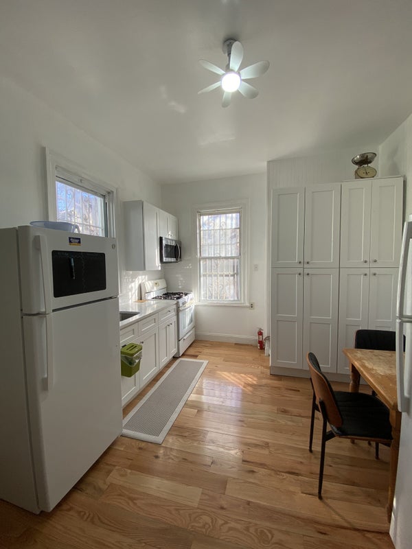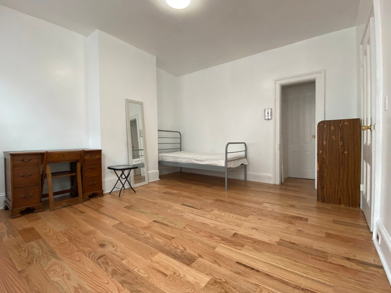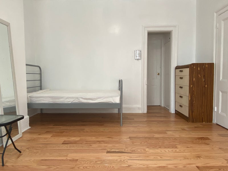 The room is large, bright, and fully furnished, with two big windows, a full-size closet, and renovated wood floors. Laundry is available in the basement. The location is extremely convenient with fast access to trains and daily essentials.