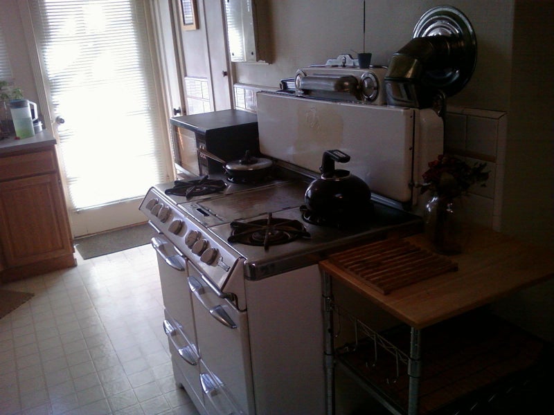 Bathroom has a sep. tub. and shower, the Kitchen is large and fully stocked w/ sky light, old fashioned gas stove,