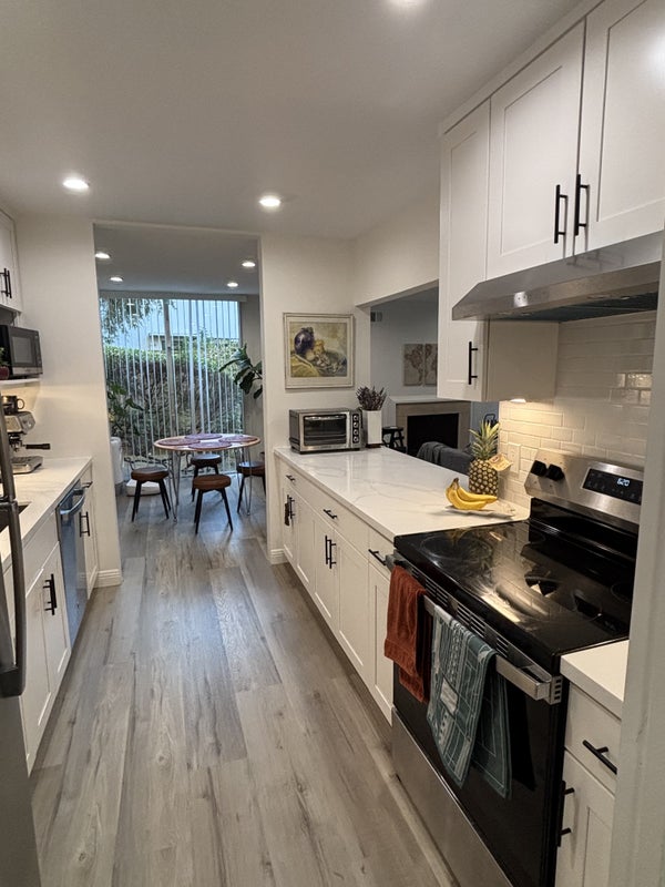 The Apartment: • Remodeled, ground floor, 1110 sq ft corner unit • Renovated kitchen with new stainless-steel appliances • New quartz countertops in kitchen and both bathrooms • Recessed lighting throughout • New laminated hardwood flooring • Fireplace • Large private deck