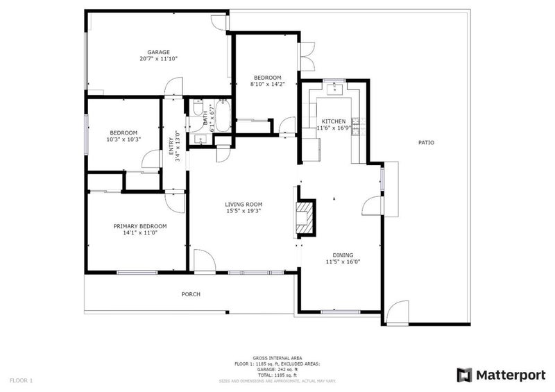 1200 sq ft. Lots of natural light in the living room. Kitchen has dishwasher, gas stove, lots of cabinets-perfect for someone who enjoys cooking. Washer/dryer in the garage. Plenty of off-street parking in front of the home or in front of the driveway. 5 minute walk to Laurie Meadows Park. AC and heater throughout the home.
