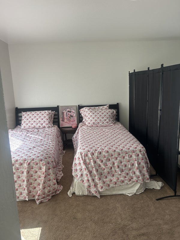 Pictures will be updated soon. Current first 2 pictures are of the living space. We are still working on putting up some dividers and making the room and space more private and usable. Third picture is just some pictures of the house overall and some of the other rooms.