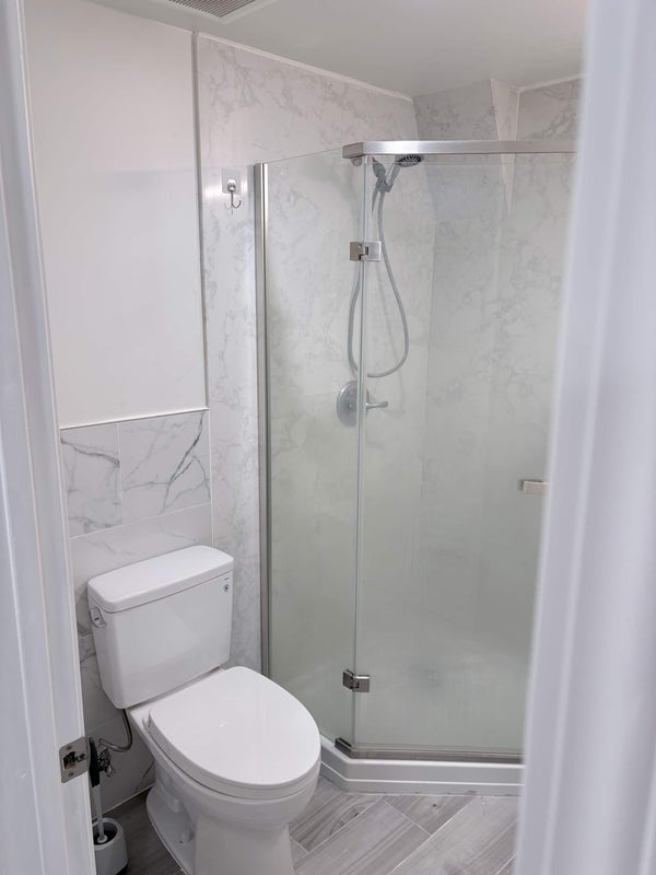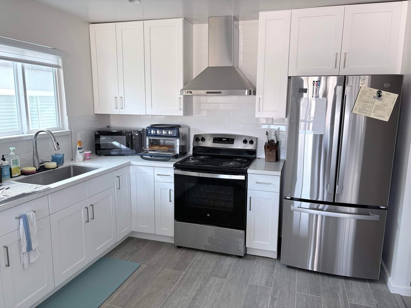 A large, unfurnished private room (approx. 270 sq. ft.) located on the first floor of a quiet home. This room features its own private bathroom for maximum privacy.