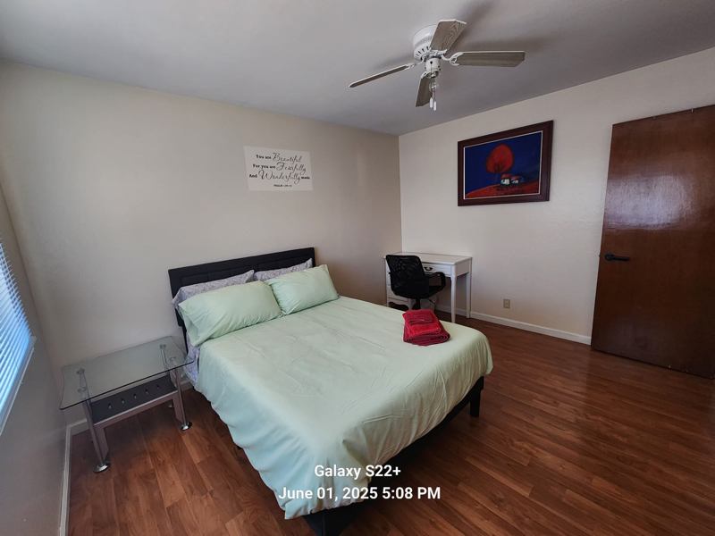 Room is FULLY furnished with full size bedmemory foam, dresser, & desk. CAN'T accommodate more furniture. SINGLE OCCUPANCY. Overnight guest must be approved by other tenant & Landlord. Private bath Shared WasherDryer in bathShare all common areas: living room, kitchen, backfront yard Shared ALL utils: Elec, gas, sewer, garbage, internet, biweekly cleaning, etc. House: FULLY furnished, CAN'T accommodate more furniture. No pet