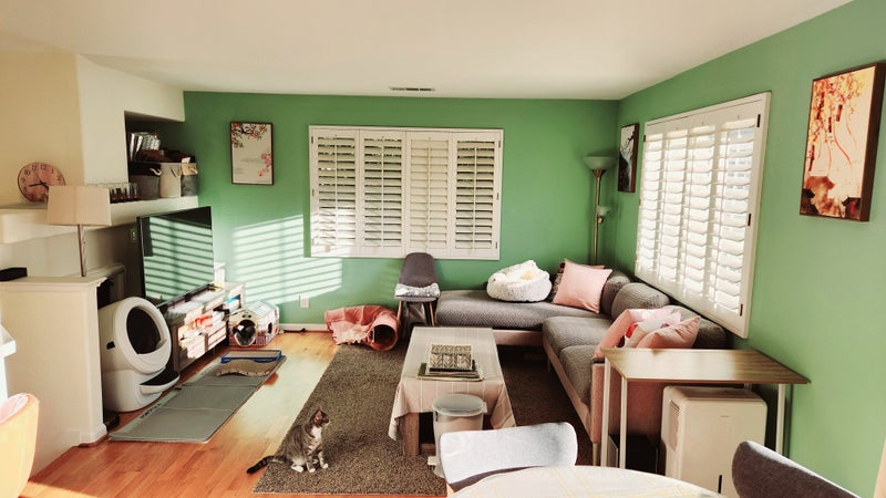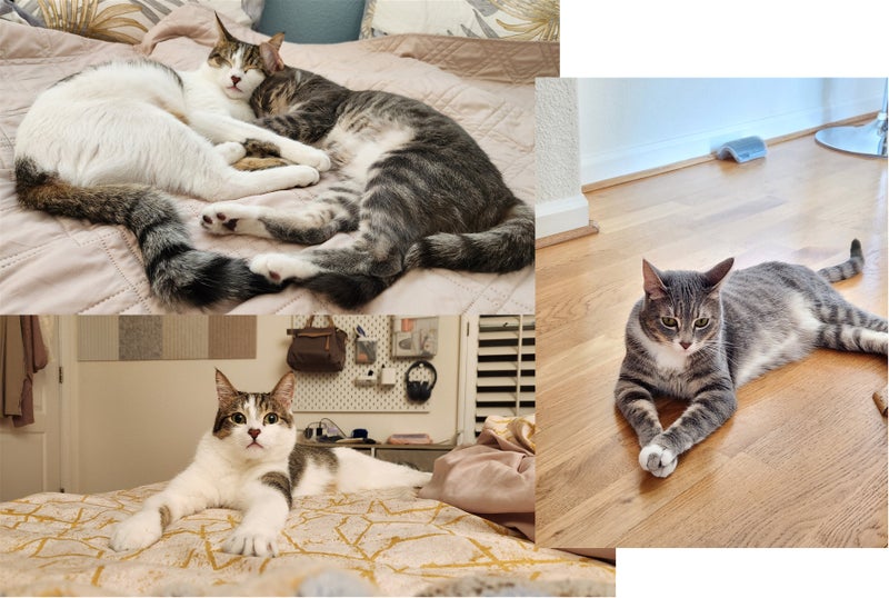 - A neutered male cat and a spayed female cat, both of which are two years old, and fully vaccinated (e. g., with FVRCP vaccines and Rabies Vaccines). They started living in the place in October 2023. They are indoor-only cats and like to hangout out with calm people.