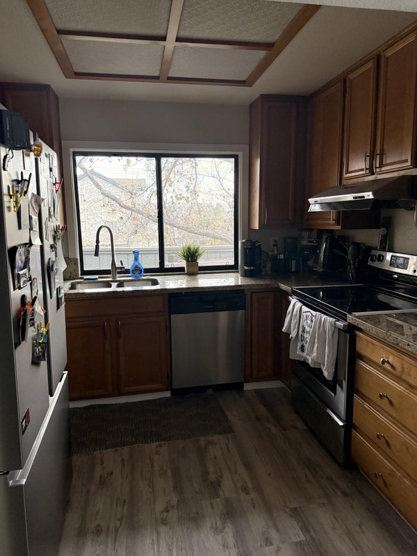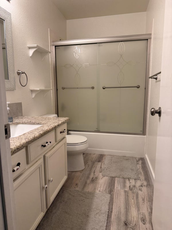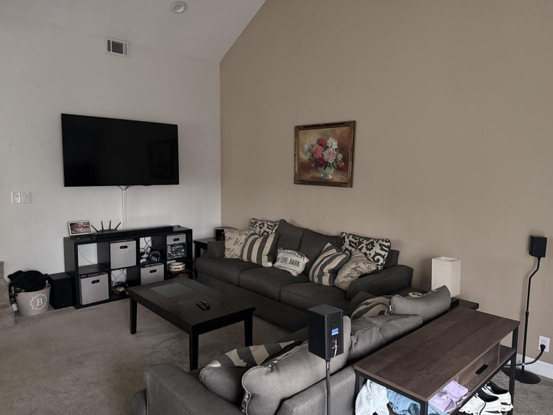 The room comes furnished with a Sleep Number bed, a sliding door closet, and a TV with your own private bathroom. There is an in-unit washer & dryer—central AC unit in the room. You are welcome to bring your own furnishings if you like. There is also a balcony to hang out on, with a gas BBQ, and full use of the laundry, dining room, kitchen, and living room areas. For parking there is a detached garage that can fit two cars tandem and there is also a dedicated outside reserved parking spot. There is also a community pool for use. Water, garbage, and Comcast internet are included in the rent. This is an upstairs condo. Please feel free to message me if you would like details.
