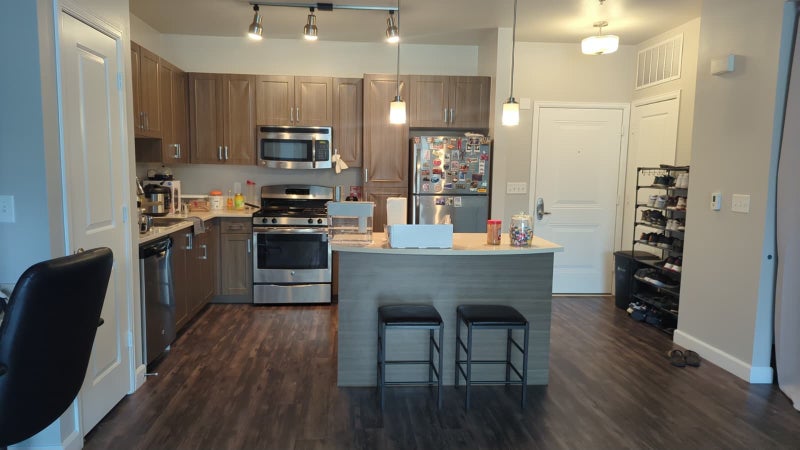 The Room & Apartment: The room features a large walk-in closet and high ceilings that enhance the open, airy feel. The entire apartment is designed with a contemporary aesthetic, including hardwood-style flooring. You’ll have full access to a kitchen with stainless steel gas appliances and granite countertops, plus the convenience of an in-unit, full-size washer and dryer and central A/C.