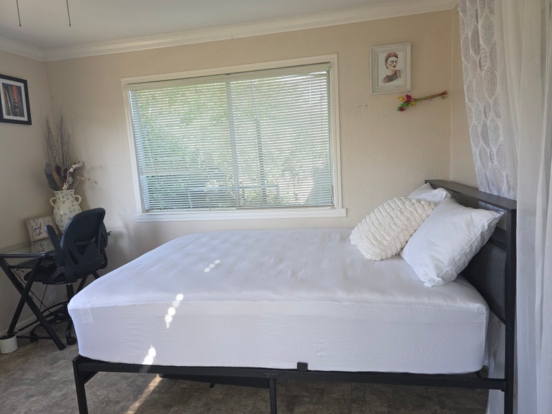✦ Queen bed with frame & pillows — move-in ready