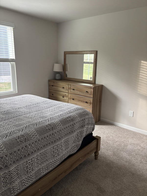 Furnished room for rent in a newly built house, Queen Bed, Dresser w/mirror, Nightstand and table is also new furniture. House is located on the east side of Spartanburg in a new housing development.