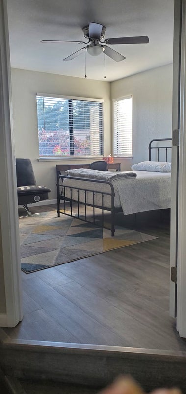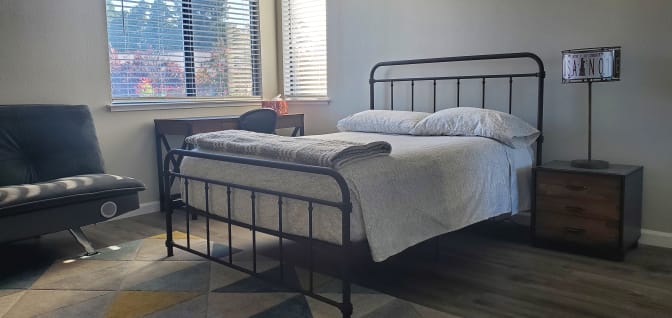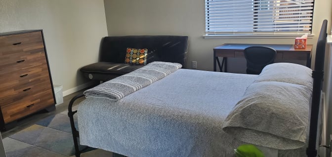 House and Room Features: • Furnished Room: closet, nightstand, drawer, TV, desk, chair, fan, bed. • High-Speed Wi-Fi: Stay connected with fast and reliable internet access. Shared Spaces: • Kitchen: including microwave, oven, coffee maker, and refrigerators. • Living rooms: including comfortable couches. • Central Air Conditioner. House Rules: • Quiet Hours: 10 PM to 7 AM. • Guest Policy: No overnight guests without prior approval. Security: • Locks: Always lock doors and windows when leaving the house. Parking: • Street parking is available. Please do not park in the driveway.