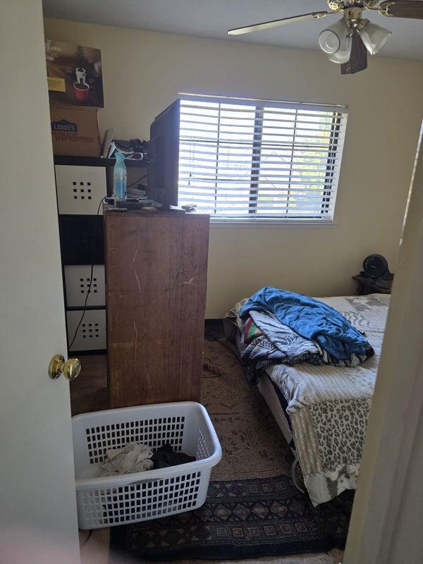 Upstairs bedroom, 11' x 12' $850 partially furnished. Shared bathroom, and a shared large loft on landing (10' x 13'). Has been used for office and media space. Also, a shared kitchen, high-speed WiFi, DirecTV, washer/dryer, small refrigerator +, lots of street parking, and a swimming pool.