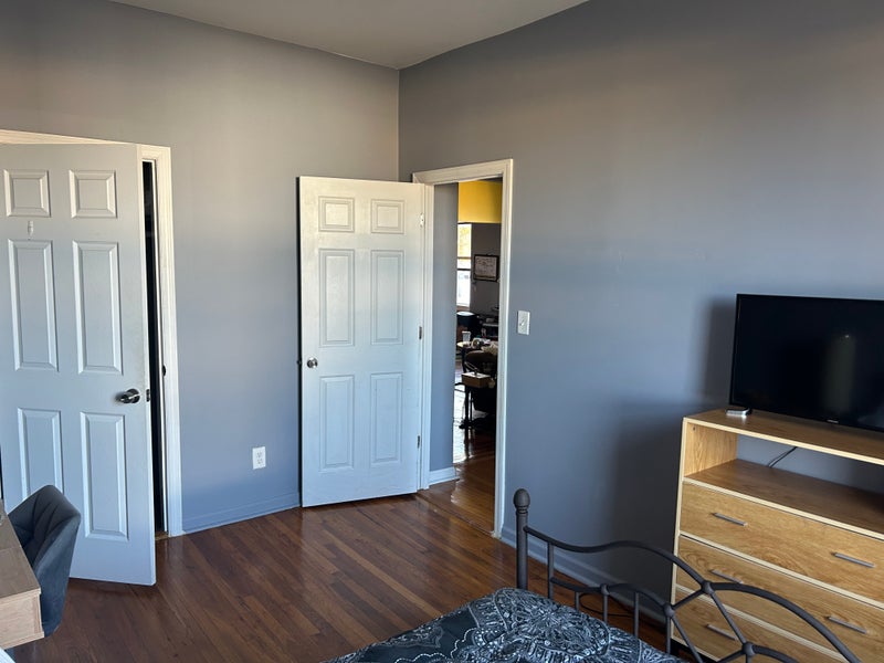Private bedroom with hardwood floors Neutral gray walls Window with natural light Fits a full-size bed comfortably Clean, simple layout β easy to make your own